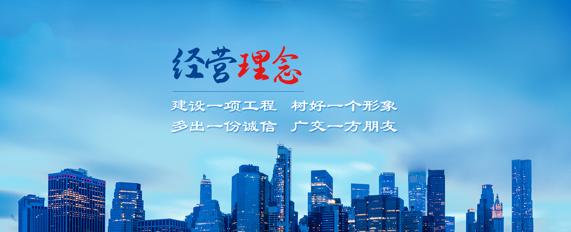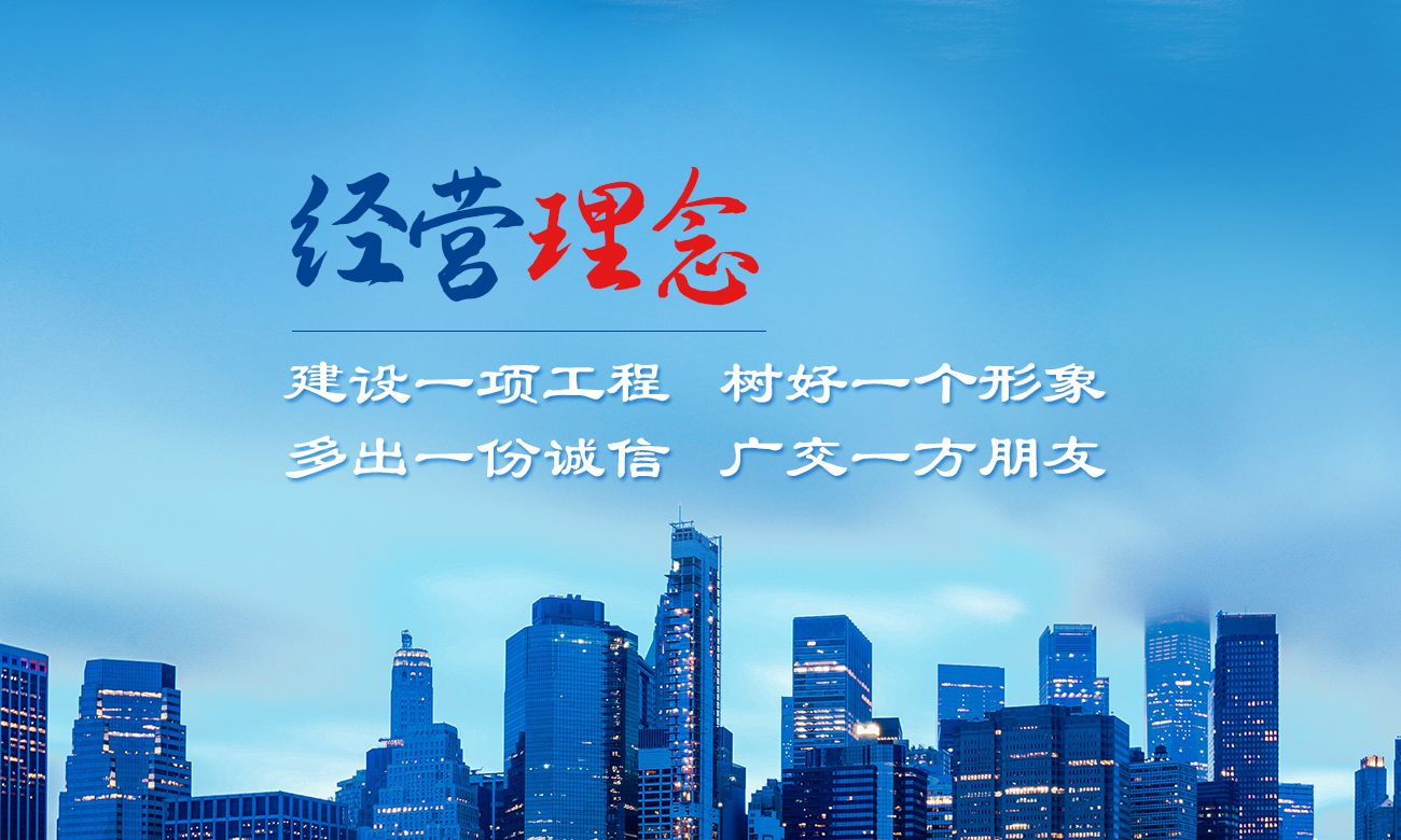 公司以建造合格建筑產品、助力國家建設為使命,以構建幸福企業為愿景。公司深知助力國家建設為使命所擔負的責任,故以“如履薄冰、如臨深淵、高調精細做事、低調謙虛做人”為工作理念,建立了完善的管理制度和質量保障體系,以人為本,構建和諧環(huán)境。公司牢固樹立安全意識、文明意識、質量意識、環(huán)境意識和精品意識。在公司質量管理過程中貫徹“雙百”方針:即工程合格率100%,客戶滿意率100%。以“建設一項工程,樹好一個形象,多出一份誠信,廣交一方朋友”為公司經營理念。
